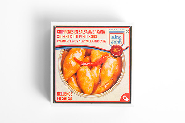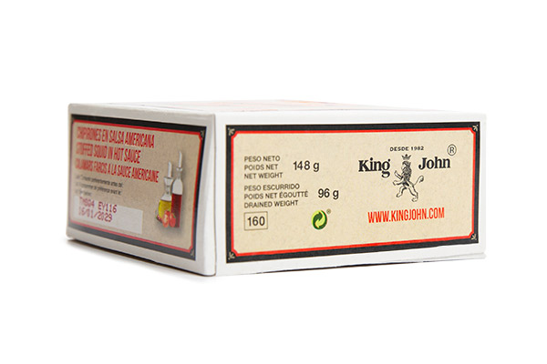 Ingredientes: Calamares, agua, tomate, aceite de girasol, sal, especias, chile picante, acidulante E-330 y antioxidante E-385.